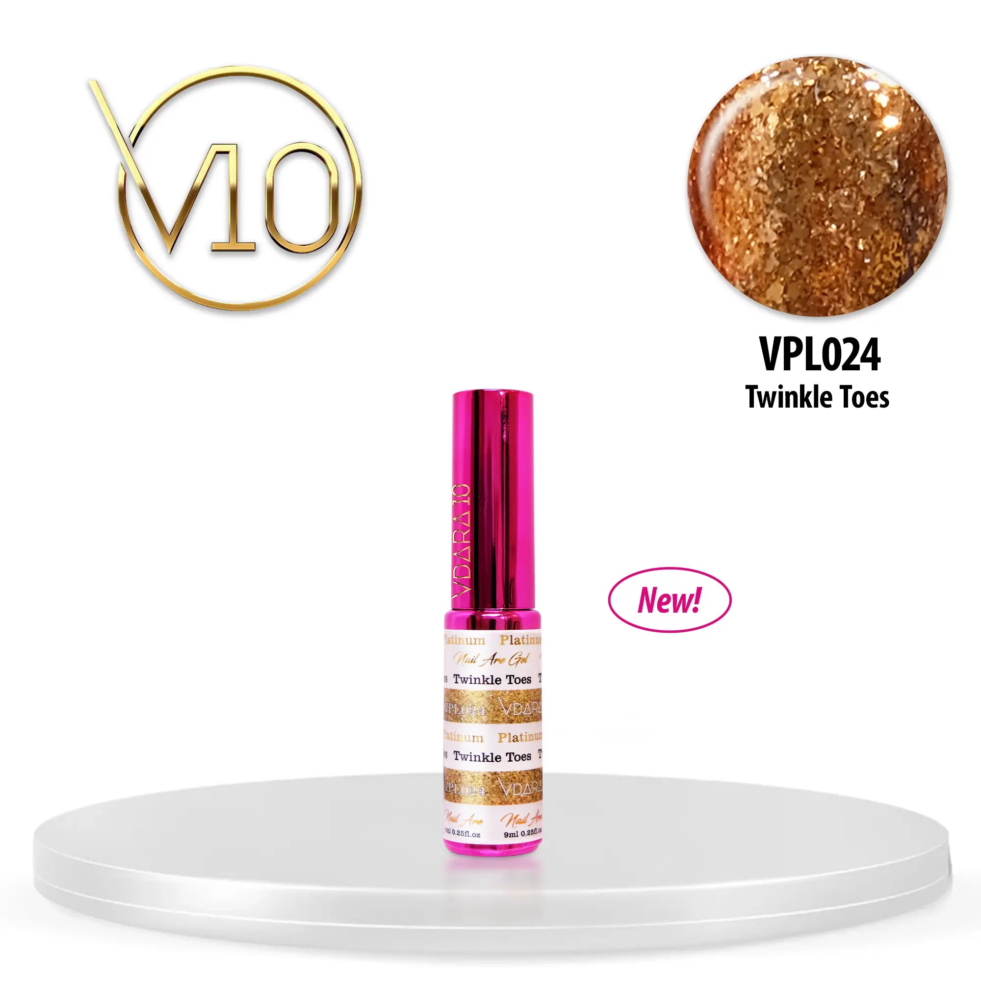 Step into golden glitter delight with Platinum Liner - VPL024 Twinkle Toes and let your fingertips (and toes!) shine with delightful brilliance!